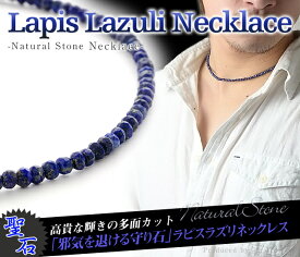 邪気を払ってくれるといわれるラピスラズリをネックレスにして身に付けませんか? ランダムな多面カットにすることで、数珠感をなくしスタイリッシュなデザインに仕上がっています。 男女兼用なので、彼氏と共有するのもおすすめです。
