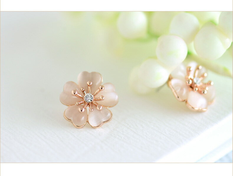 2.0cm X 2.0cmの少し大きめな桜のピアスは知的な美しさを演出します。 淡い桜色のキャッツアイとピンクゴールドメッキの組み合わせがとても上品。 優しい色使いが女性的で、3月生まれの彼女への誕生日プレゼントにぴったりです。
