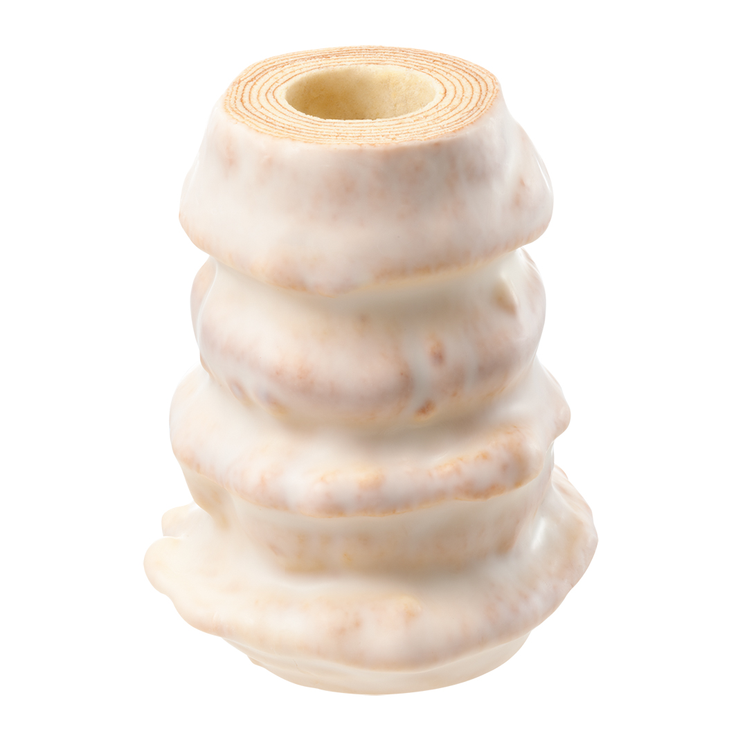 クラブハリエのレシピはそのまま、真っ白な限定バームです。 中まで真っ白なバームクーヘンは意外と少なく、とても芸術的ですよね! 卵黄まで白い卵を使用しているそうです。 一口でやさしい甘みが口いっぱいに広がりますよ。