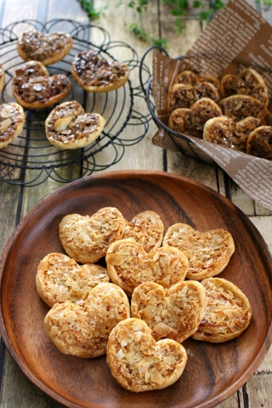 まず紹介するのは簡単かわいいフロランタンパイです。 初心者でも難しくはない手作りレシピと、可愛らしいハートのみため、サクッとした食感は女子受け抜群の、ホワイトデーの手作りレシピとしておすすめしたいお菓子の1つです。 ホワイトデーの手作りお菓子としてではなく、来客用の手作りレシピとしても大活躍するので、女子と仲良くなる話題のきっかけにもなるかもしれません。
