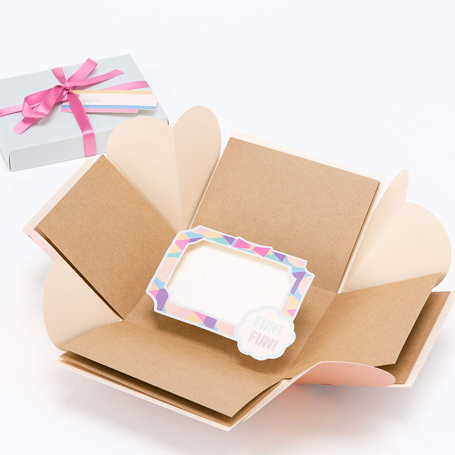 かわいいプレゼントをあけると真ん中のスペースについたバネが付いたフレームが飛び出す、遊び心満点のギフトボックスです。 プレゼントにお手紙を添えたいと考えている方におすすめ。プレゼントをとると底からかわいい手紙がでてくる、2段階で驚くサプライズBOXです。