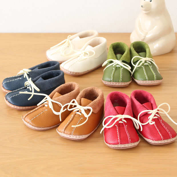 こちらもオシャレなデザインです。カラーバリエーションが豊富なので男女問わず人気が高いファーストシューズのキットです。 カラーはネイビー、キャメル、レッド、オリーブ、ホワイトとどれもおしゃれで迷ってしまいますね。 どんなお洋服にも合うデザインです。