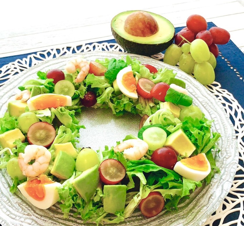 珍しいぶどうとアボカドの組み合わせが爽やかなリースサラダは、クリスマスの食卓を鮮やか彩ってくれます。 取り分けやすいサイズに切られた野菜が良いアクセントになって、見た目も楽しいですね。 簡単にクリスマスらしい雰囲気を出せる一品です。