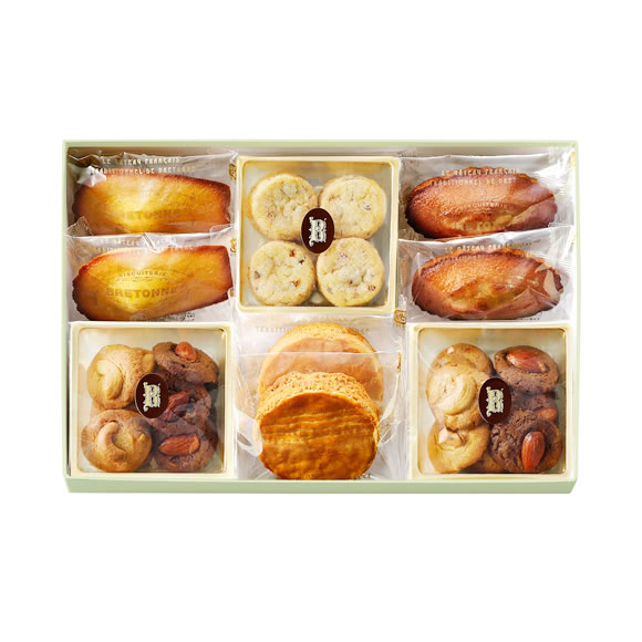 ブルターニュ特産の“ゲランドの塩”を使用し、丁寧に焼き上げられた「ブルトンヌ」の焼き菓子。 様々な種類のお菓子をこのひと箱で楽しめるので、貰った方もきっと喜んでくれるはず! 賞味期限も1か月あるので、内祝いに贈るお菓子としておすすめです♪