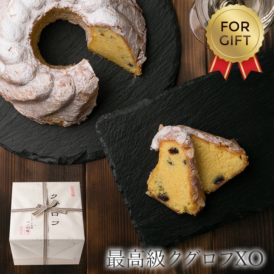 アーモンドベースの生地に粉砂糖をふりかけた、 山のような形をしたケーキ「クグロフ」。 見たことはあるけど、 食べたことはないという方も多いのではないでしょうか? こちらの「クグロフ家」のクグロフは、 しっとりとした生地に甘い干しぶどう、ふんわりと香るブランデーが特徴的で、 どこか高級感漂う大人な味わいです。 どっしりと大きなサイズ感は見た目にも華やかで、 贅沢な高級プレゼントとしてピッタリです。