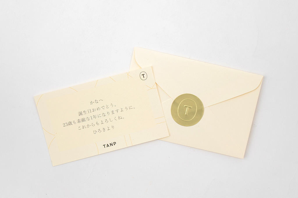 「自分でメッセージカードを用意して、手書きで書くのは少し手間がかかって大変だな...」と億劫に感じている方も多いはず。 タンプでは、商品を購入すると、商品と一緒にメッセージカードをつけて相手にお祝いの言葉を送ることができますよ! メッセージの内容は、注文時にスマホやパソコンから入力するだけ! そのため、出産祝いギフトに合わせて、簡単にメッセージを贈っていただけます。