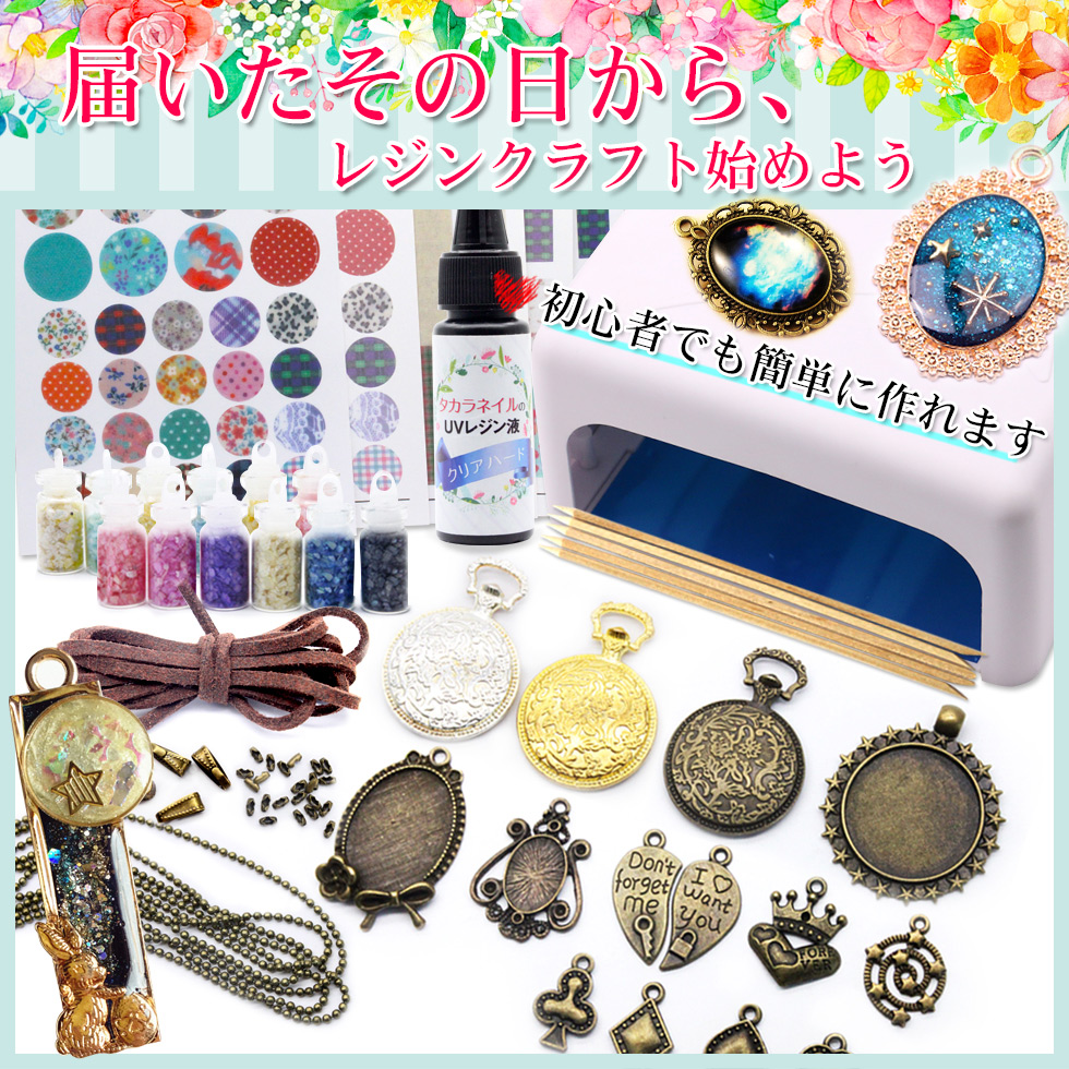 こちらはチャームの土台や、ライトまでついたスターターセット!レジンに初めてチャレンジする人におすすめのセットになっています♪ オリジナルチャームを作って、スマホカバーやミサンガにつけてもかわいいですよ。
