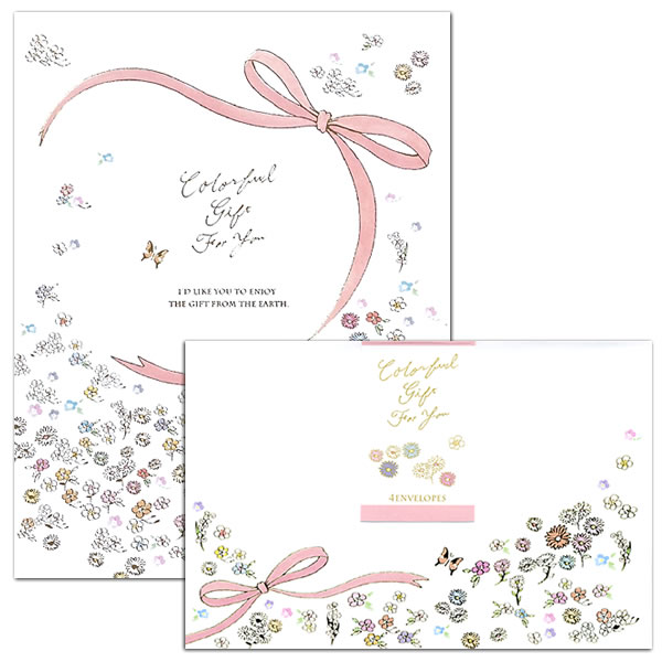 リボンとお花モチーフの可愛いレターセットです。 お花もリボンもお祝いに相応しいデザインで、繊細なイメージの出産祝いのお手紙にもおすすめのレターセットです。 こちらも便箋と同じデザインの封筒がセットになっています。