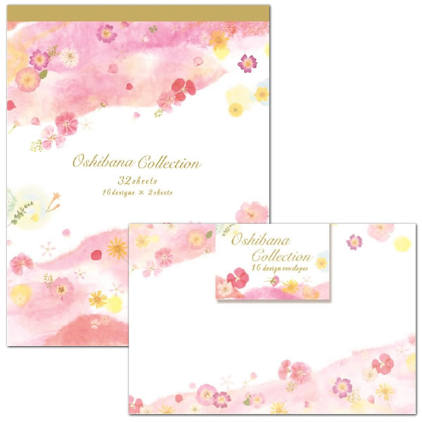 色とりどりのお花16柄の便箋が各2枚づつ入った、押し花作家・相良奈穂さんデザインのレターセットです。 便箋とお揃いのデザインがされた封筒もセットになっている可愛いレターセットで、柔らかくて優しいカラーばかりなので出産祝いのお手紙にもおすすめ。