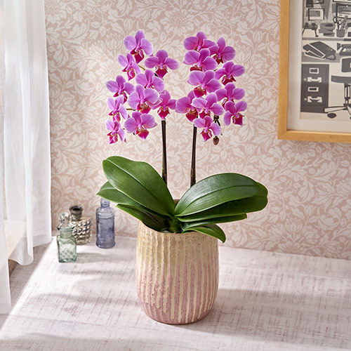 優雅で気品がある胡蝶蘭、お祝いによく使われる花です。 花言葉は「幸福が飛んでくる」「純粋な愛」 結婚して末永く幸せになってほしい!そんな思いを伝えられます。