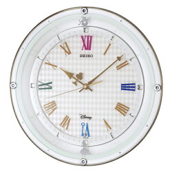 12時には白うさぎのシルエット、6時にはアリスのシルエットがデザインされたおしゃれな掛け時計です。 「Ⅵ」の文字には隠し鍵が隠れている遊び心いっぱいのデザインで、周囲のメタリックカラーやスワロフスキーの輝きも華やかな結婚祝いにもおすすめの時計です。