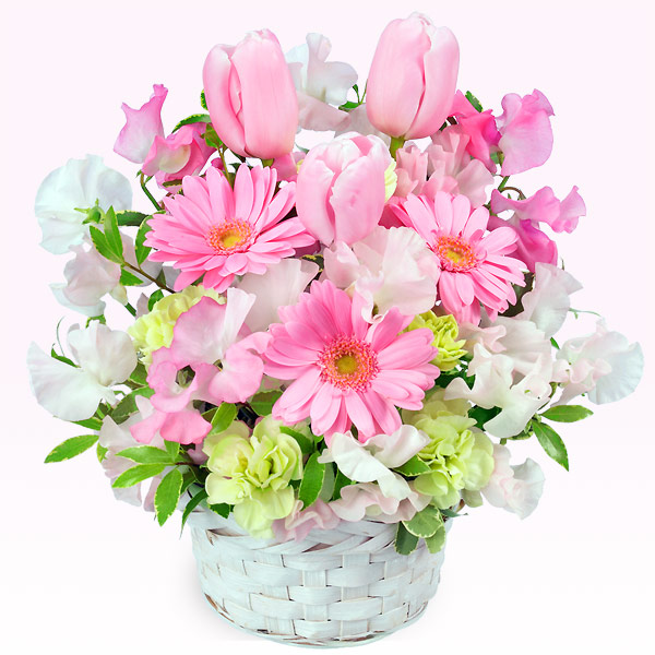 春のお花の代名詞チューリップは、可愛らしいイメージでみんなが大好きですね。 キュートなアレンジメント♪ピンク色のお花でまとめました! チューリップ(ピンク)は「愛の芽生え」が花言葉です。