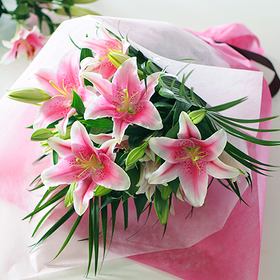 ユリの花は豪華で華やかなので、ボリュームのある見栄えのする花束になりますよ。白の他ピンクも人気です。 見栄えする人気の花束を誕生日に贈るならこれがおすすめですよ◎ ピンクのオリエンタルリリーの花言葉は「高貴」「子の愛」です。
