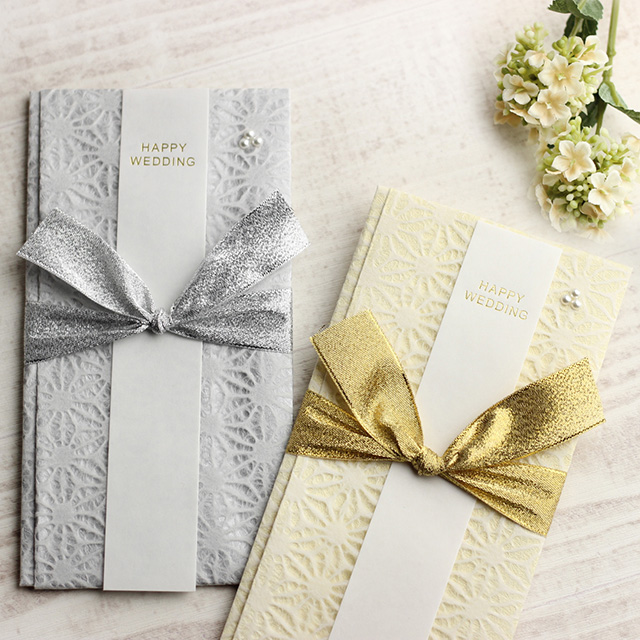 透かし模様の和紙と華やかなリボンがオシャレなご祝儀袋です。