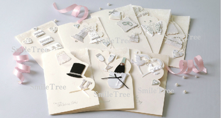 特別な日をお祝いするために贈るカードとして、素敵にデザインされたウエディング用のグリーティングカードです。 結婚のお祝いに使うメッセージカードには、二つ折を用意してメッセージは片側に書くようにするといいですよ。