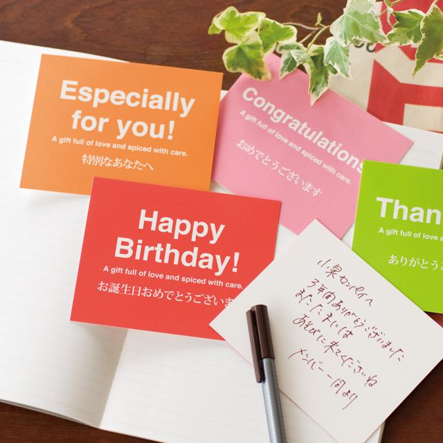 英語と日本語でメッセージがデザインされていて、気軽に使える便利なメッセージカードです。 スタンダードなデザインがスマートな印象ですよね。 カードの裏面は白紙なので、手書きメッセージをそえることもできますよ。