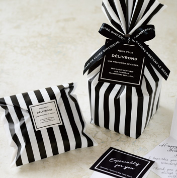 スタイリッシュなデザインのプレゼントは、男性に喜ばれます。 白と黒のストライプ。至ってシンプルなデザインですが、それゆえに男性にはぴったりなラッピング袋だと言えるでしょう。 こちらは主に男性向けの、中身が見えないタイプのラッピング袋になります。 洋風なので、ヨーロッパ発祥のお菓子を包んで渡してあげると、中身と袋がマッチしておしゃれですね。