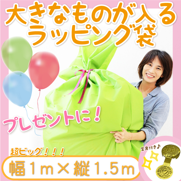 小さなプレゼントを包むためのラッピング袋はたくさんありますが、大きめのラッピング袋となると、種類が限られてきます。 半面、大きなプレゼントというのはぬいぐるみからカバンまで、実に様々ですから、渡したいプレゼントに合うラッピング袋が中々見つからないことがよくあります。 そんな時は、カットして使えるラッピング袋を選びましょう。 使うタイミングが限られてしまうので、買う量がなかなか難しいところではありますが、とっておけば後でまた使えるかもしれません。 地味な柄でも、可愛らしい柄のリボンを選んで口を結べば、ぐっとおしゃれになりますよ。