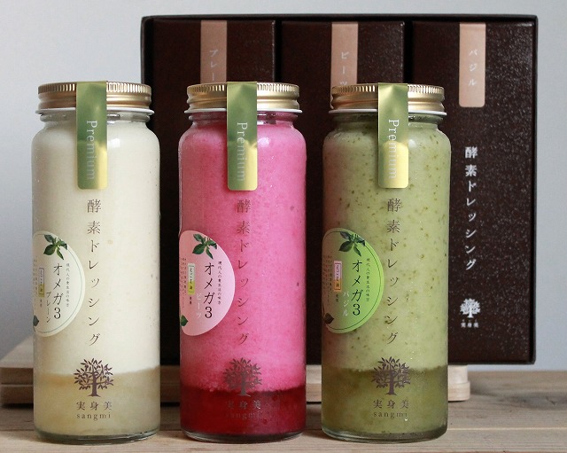 女性に大人気のオーガニックカフェ「実身美(さんみ)」の人気商品で、「野菜を野菜で食べる」をコンセプトに作られたヘルシーな酵素ドレッシング。 最近ダイエットでも取り上げられることが多くなった酵素ですが、この「オメガシリーズ」は現代人に不足していると言われるオメガ3脂肪酸が多く含まれた「えごま油」を使用した、ヘルシーなドレッシングです。