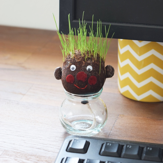 まるで髪の毛が生えてくるみたいな、頭から芝生が生えてくるオモシロ植物です。可愛い見た目から、癒しと笑いをプレゼントすることができます。 長く育てていると、髪の毛のお手入れもできる(芝生のカット)たのしい商品です。