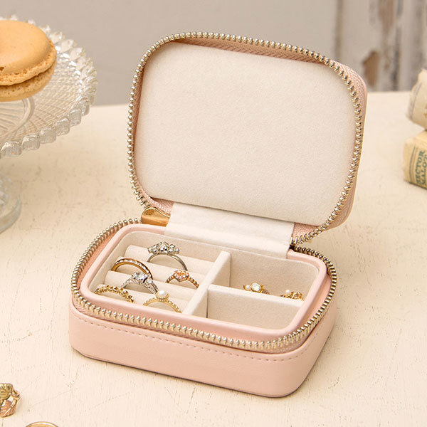 おしゃれで気品あふれるトラベルジュエリーケースです。アクセサリーが好きな女性に贈る誕生日プレゼントには特におすすめです。 バッグに入れても邪魔にならないサイズなので持ち運びにも便利!この先「記念日などに贈る指輪をここにしまってね」という言葉を添えたらさらに愛が伝わることでしょう。