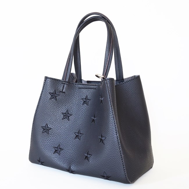 エンブロイダリースターの2WAYトートです。近所へ少し出掛ける際や、もちろんデートにも活躍のちょうどいいサイズのバッグです。シンプルで着る服を選ばず、さりげない星が可愛い! あっても困らない、活躍の場が多いおしゃれなバッグです。