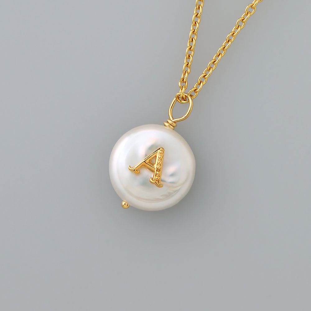 可愛いコイン型のパールにイニシャルがついたペンダントです。 お友達のイニシャルで贈れば、特別な誕生日プレゼントになり喜んでもらえることでしょう。シルバーとゴールドカラーの2色から選べます。各イニシャルが用意されているので、お目当てのものを選択してください。(こちらは”A"の商品ページです)