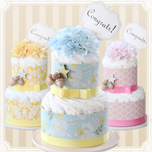とっても可愛いくて豪華なおむつケーキ。 双子だとおむつも2倍必要なので、実用性があってインスタ映えするおむつケーキは人気があるんですよ~♪