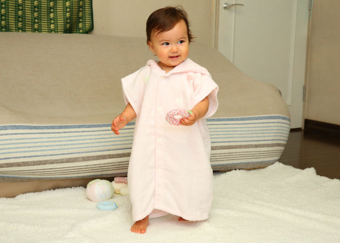濡れたままで、さっと着られるバスローブ。 お風呂上がりは、ママも体を拭いたり着替えたりで忙しいものです。 赤ちゃんを簡単にくるめて、風邪を引かせない便利アイテムです。