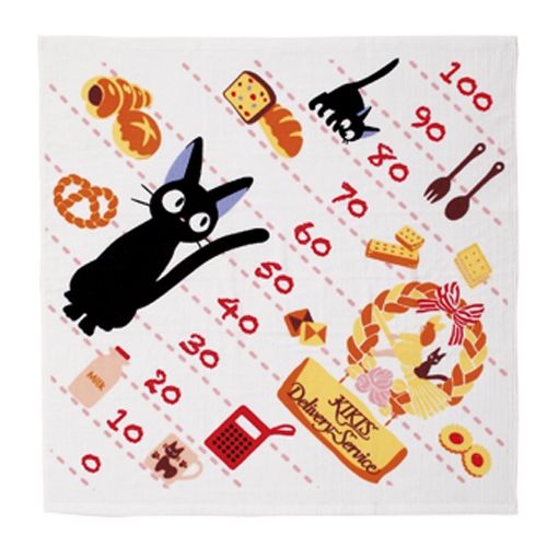 表はガーゼ、裏はパイル仕様で、肌座りが良く吸水性も高い綿100%の湯上げタオルです。 「魔女の宅急便」に出てくるジジとパン屋さんの可愛いデザインで、100cmまでの身長計付きなので赤ちゃんの成長を計りながら体を拭いてあげる事が出来ます。 出産祝いにぴったりのデザインですね。