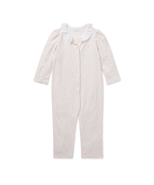 柔らかなプレミアムコットンを使用したカバーオール。 カバーオールは、出産祝いのプレゼントの定番とも言えますが、ラルフローレンのカバーオールなら絶対に外しません。 フリルの襟が上品でかわいく、お家でもお外でも、毎日でも着せたくなるカバーオールです。