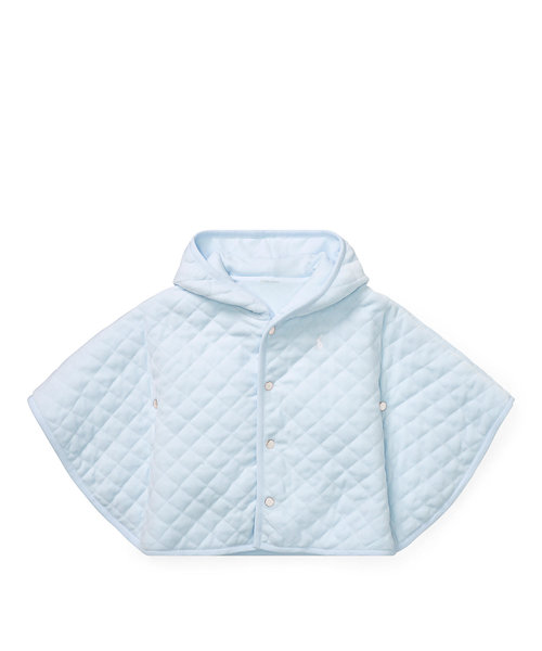 淡いブルーのケープ。 寒い時期に赤ちゃんにさっと羽織らせることができるケープは、絶対に重宝します! 胸にはさりげなくポロの刺しゅうが入っており、おしゃれに決まる一枚です。 かわいい赤ちゃんをもっとかわいくしてくれます。 ママたちから大絶賛される出産祝いのプレゼントです!