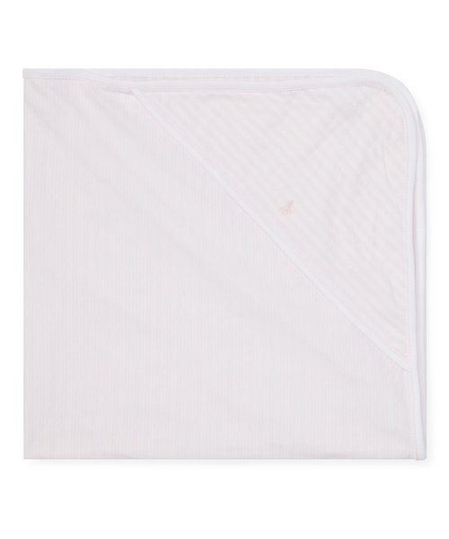 柔らかな手触りで、優しいピンクのストライプのフード付きブランケット。 おくるみとしてや、ベビーカーやチャイルドシートでのひざかけ、赤ちゃんのお昼寝にと、いろいろ使えてとても重宝します! フードのフロントには、ポニーの刺しゅうが入っています。 おしゃれな出産祝いとして、どなたにでも喜んでいただけます。
