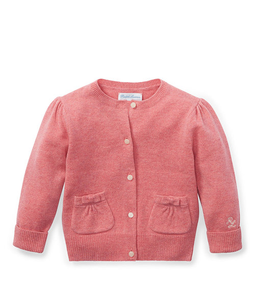ラルフローレンの赤ちゃん用カーディガン。 イタリア製ウールを使用し、ポケットに可愛らしいリボンのディテールをあしらったかわいい、そして上品なデザインです。 肌触りがとてもよく、赤ちゃんの肌に優しい素材です!