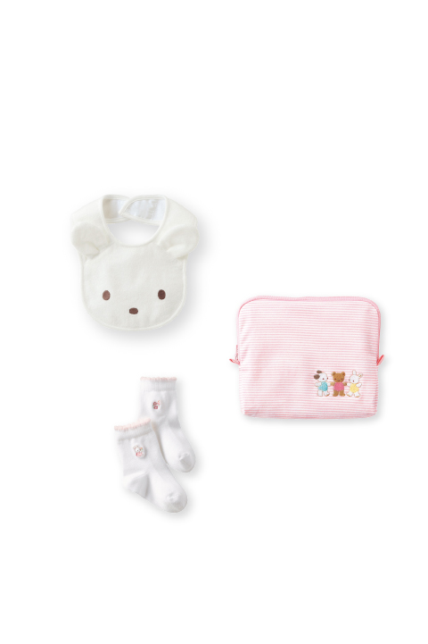優しいピンクをたくさん使った女の子らしい出産祝いのギフトをご紹介いたします。 子供の成長はとても早く、次の年にはもう入らないなんてこともザラにあります。 少しでも永く愛用していただけるように、シーズンの枠組みに囚われない、つまり違和感のない組み合わせが出来るデザインとなっています。