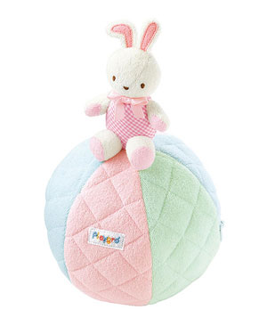 うさぎさんの付いたパイル地のやわらかなチャイム。 転がすと美しい音を立てて立ち上がります。カバーは取り外して手軽に洗えるのでいつも清潔に保てます。 このおもちゃで遊びながら、ハイハイの練習をしていて、 前にもちょっとずつ進めるようになり、動ける範囲が広くなったというお声も!