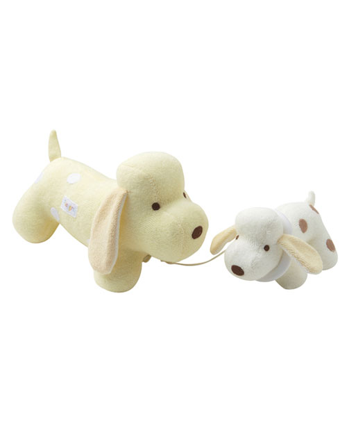 引っ張ることで、子犬が親犬に少しずつくっついていく仕掛けのあるオルゴールです。 オルゴールは外すことが可能なので、もし汚れたとしても手荒いができます。 赤ちゃんの日々の成長を、肌触りの良いパイル生地のワンちゃんも見守ってくれますよ。