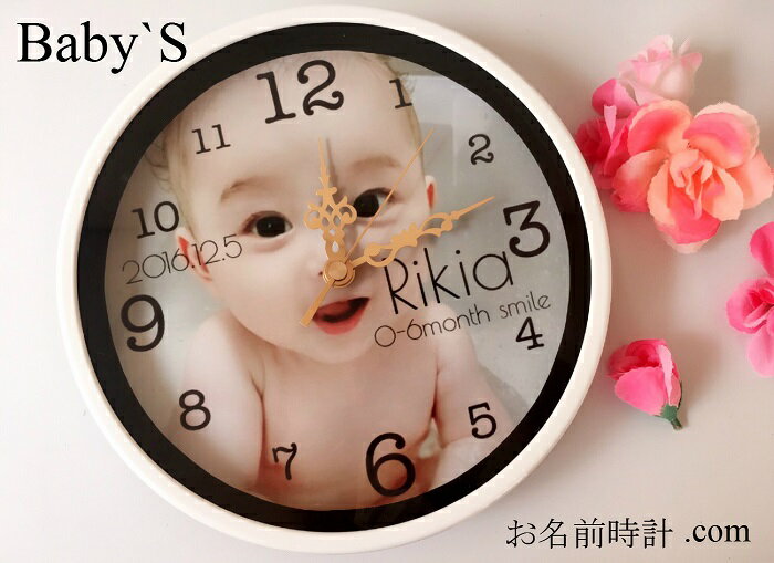 赤ちゃんのお好きな写真をいれた、世界に1つだけの時計です。 名前も文字入れもOKです。 出産祝いが一生残る記念の1品です!