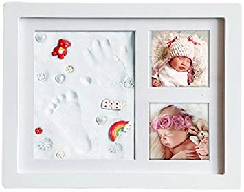 手形と足形を写真の両サイドに入れられるフォトフレームです。 付属の専用パッドでお子様の手足を汚さずに型をとることができます。 赤ちゃんとの思い出をスタイリッシュに飾れるアイテムです!