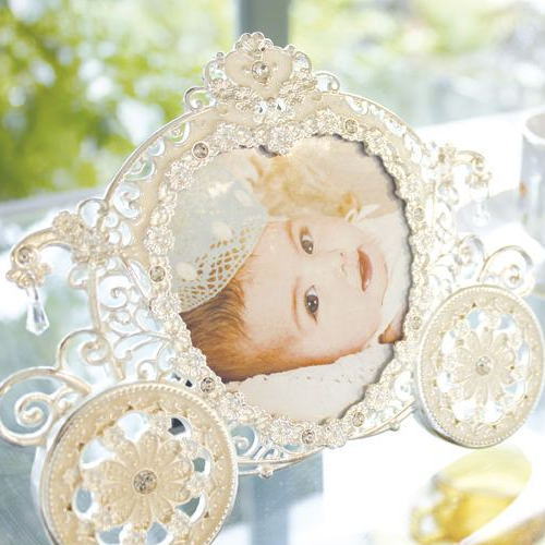 白とシルバーのフォトフレームです。 おとぎ話の馬車をイメージしたフレームが、赤ちゃんをひき立ててくれます。 赤ちゃんを飾る為につくられた可愛い1品です!