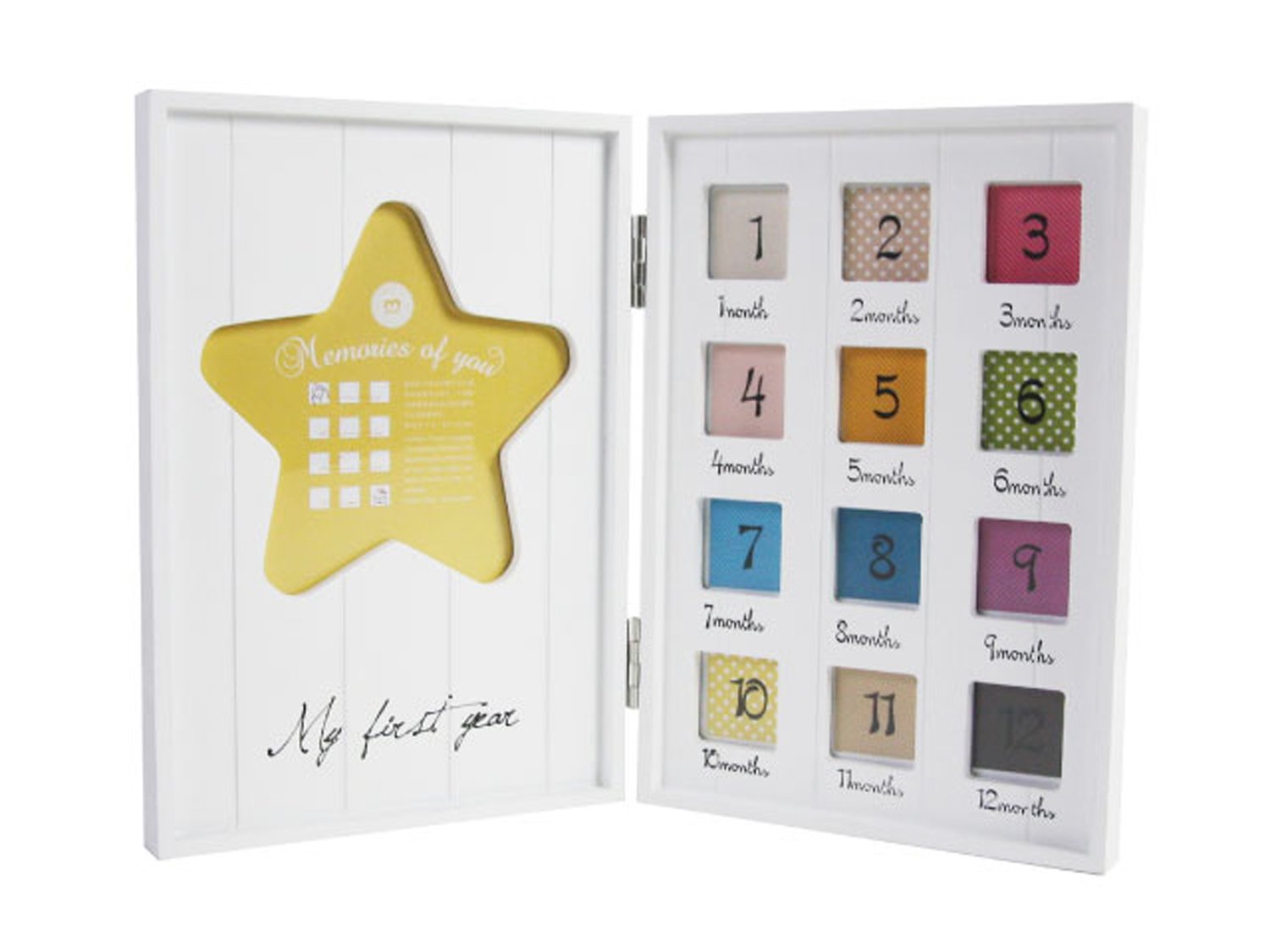 生後1年間の赤ちゃんの成長を記録しながら、次のお誕生日までを飾るフォトフレーム。 使わない時はスリーブタイプにのBOXに収納でき、コンパクトに飾れる便利な商品! 2018年の出産祝いのフォトフレーム第1位商品です!