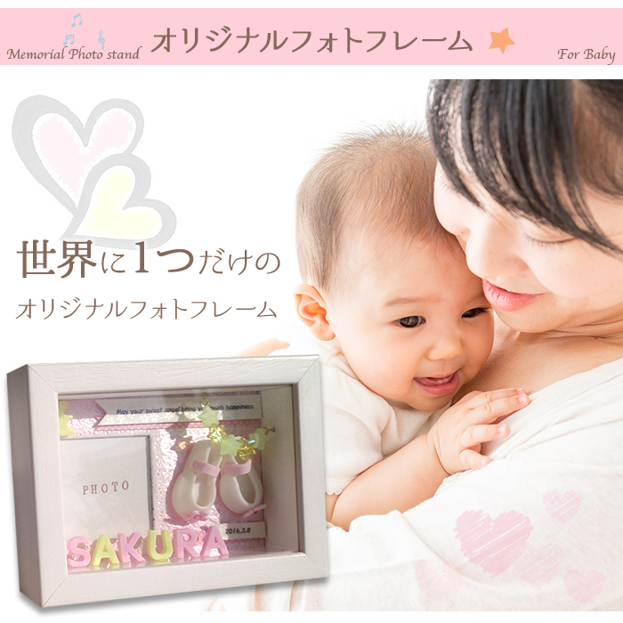 赤ちゃんが生まれたら、たくさんの写真を撮ってしまいますね。 笑った顔もかわいいし、眠っている顔もかわいい。 1日1日と成長する姿を写すのは楽しいですし、振り返って見直すのも、また楽しいものです。 そんな可愛い思い出の写真をフォトフレームに入れて飾ってもらいましょう。 たくさんの素敵な商品をご紹介してまいりますので、あなたがプレゼントしたい1品を見つけて下さい。 ぜひ、出産祝いには可愛いフォトフレームをプレゼントしてあげましょう。