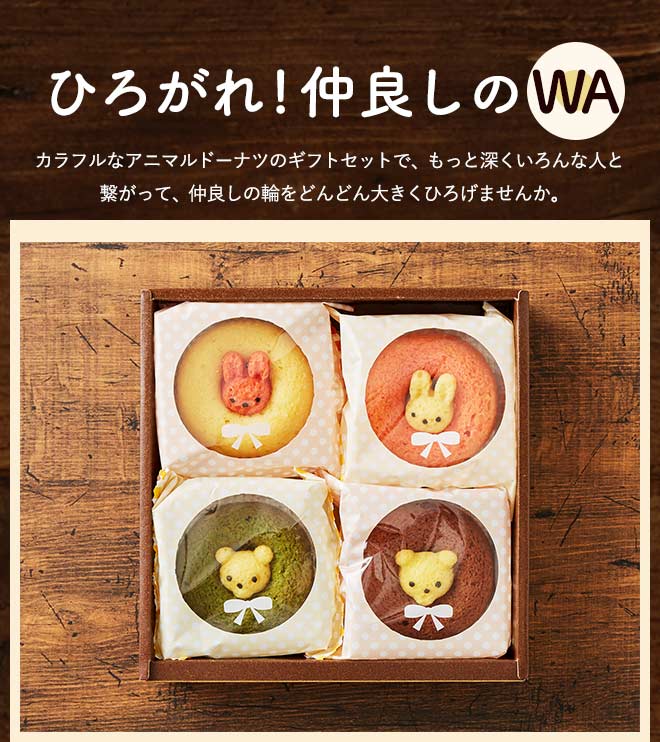 箱を開けた瞬間にテンションが上がりそうな、可愛らしいアニマルドーナツです。 頑張っているママへのご褒美にもピッタリですよね!