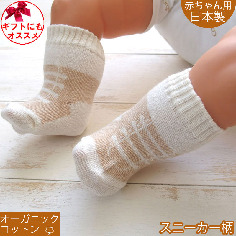 とっても可愛いスニーカー柄のベビーソックスです。 敏感な赤ちゃんの肌にも優しい、オーガニックコットン素材がいいですよね!
