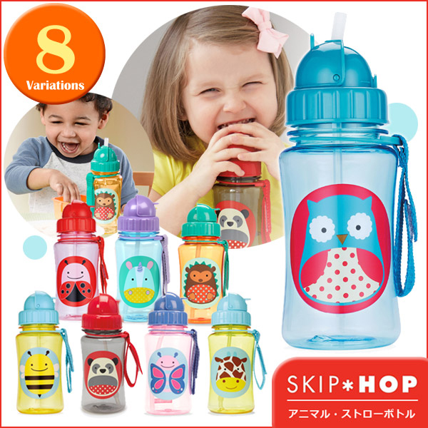 1歳頃から使える、ストローボトル。 ストラップもついているので、お出け時に大活躍すること間違いなし♪