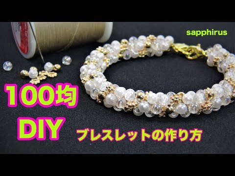 ペヨーテステッチという編み方を使って作る パールブレスレットの作り方です。 針と糸を使ってパールと メタルのパーツを編み込んでいきます。 100均の材料を使て作ったとは思えない クオリティーのブレスレットが手軽に作れるので 手作りのものが好きという人はぜひ挑戦してみてください!