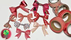 マスキングテープで ミニサイズのリボンをたくさん作ってラッピングをすれば、 プレゼントがかわいらしく仕上がります。 用意するものは、マスキングテープとホッチキスです。 マスキングテープで10㎝程度の輪っかを作り、 その中央をホッチキスで止めます。 リボンの足になる部分も輪っかを作って、 両端にV字の切れ込みを入れて、 最初に作った輪っかのリボンと合体させます。 輪っかのサイズを変えれば、 さまざまなサイズのリボンが作れるので、 たくさん作ってみてください!