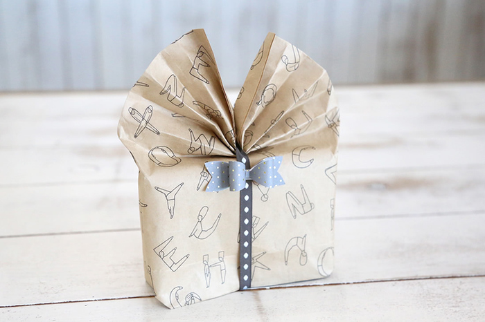 紙袋を使ってプレゼントをラッピングするときは 簡単なのにゴージャスに見えるジャバラ折りがおすすめです。 紙袋の上部をアコーディオンのように 交互に5回から6回折り込んでいきます。 折り込んだら、中央をおさえて リボンを巻くと出来上がりです。!