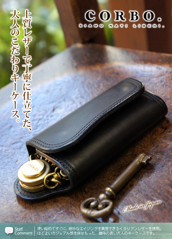 細部の仕立てにまで、こだわりがみられる『コルボ』のキーケースです! 金具にも工夫が施され、使いやすくなっています。 上質な革を使い物創りへの挑戦を続ける熱意が伝わってくるようです。
