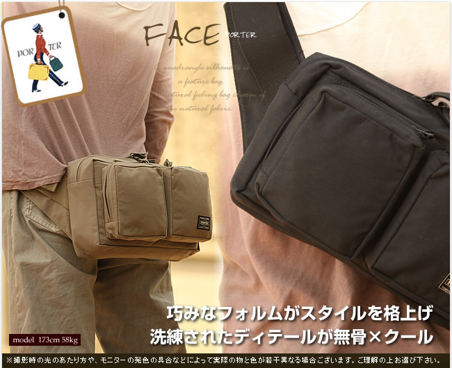 四角いシルエットが特徴の『フェイス』シリーズのウェストバッグです! 生地には強度のすぐれた『66ナイロン』を使用し、ナチュラルな感じが美しい。 金具には艶消しのブラックニッケルを使い、大人の雰囲気を演出しています!